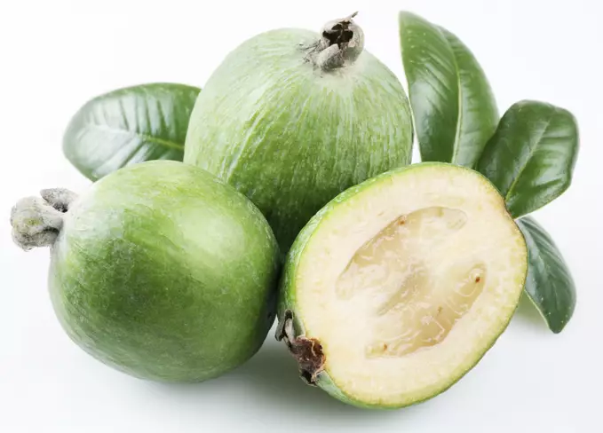 Feijoas have a tropical, fruity, and floral taste suited for fresh and cooked preparations. The small fruits can be eaten straight out of hand and have a semi-firm to soft consistency, depending on maturity, and a slightly gritty texture.